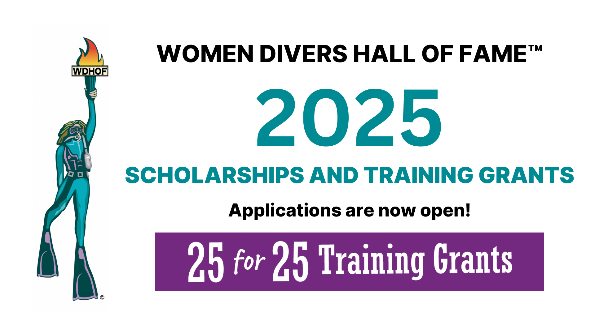 The Women Divers Hall of Fame™ (WDHOF) has officially opened its applications for the 2025 Scholarship and Training Grants! This program offers financial and educational support to individuals who are passionate about the marine environment and need financial assistance to conduct research or learn/advance dive training. Whether you’re just starting out or already making waves in the world of diving, WDHOF has something for you!
